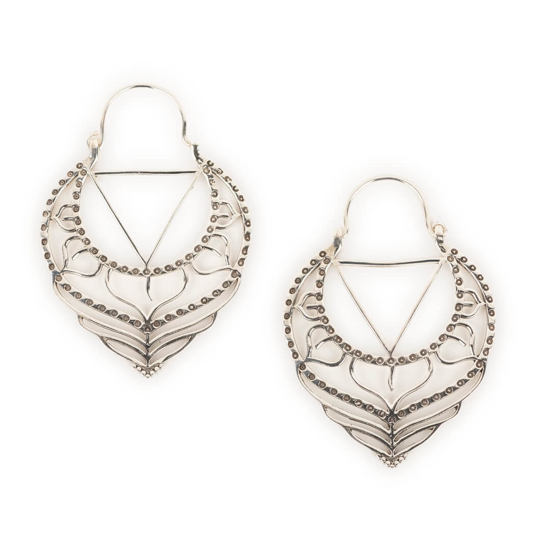 Indyjskie srebrne kolczyki geometryczne małe jhumka.pl